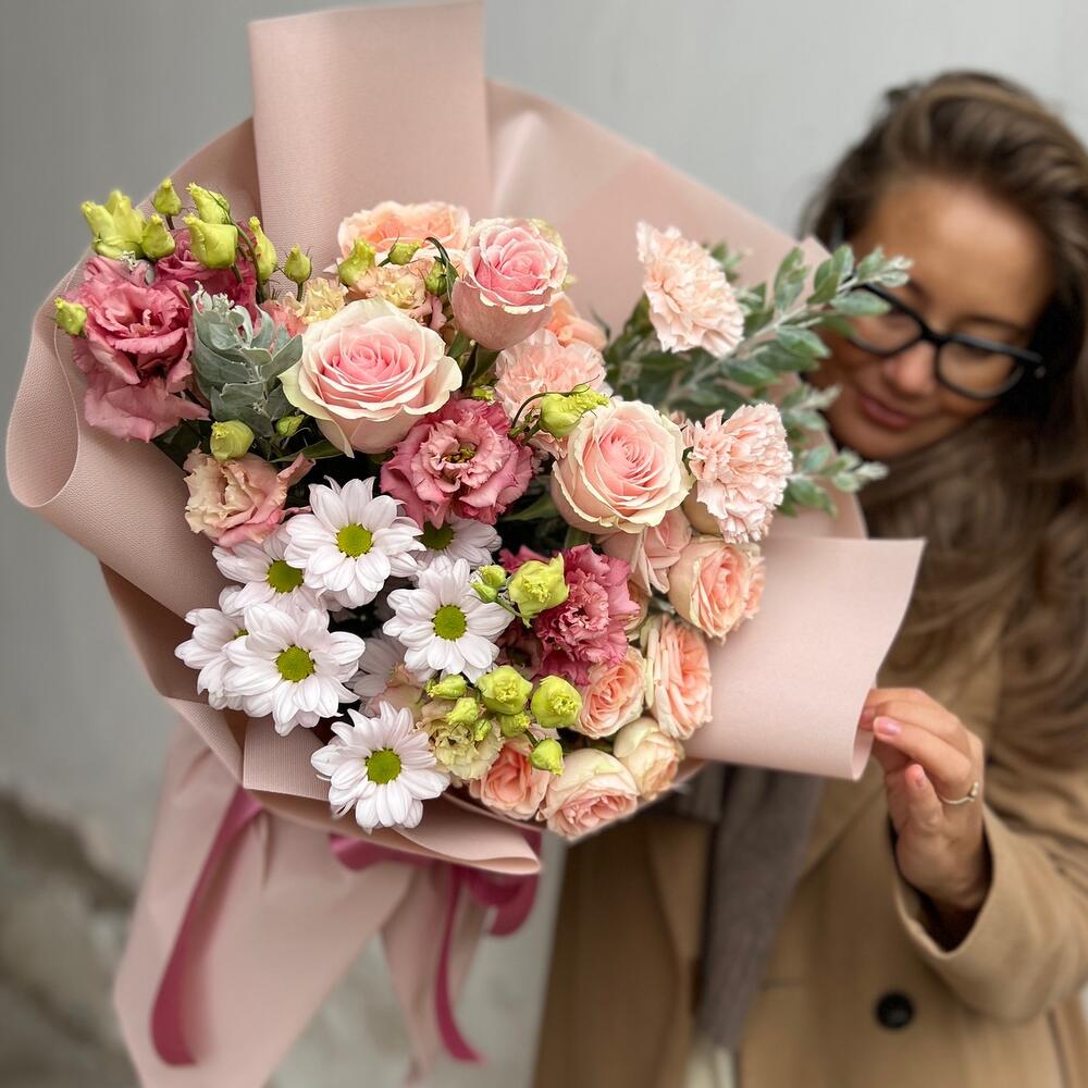 Гвоздики, Кустовые розы, Лизиантусы, Пионовидные розы, Розы