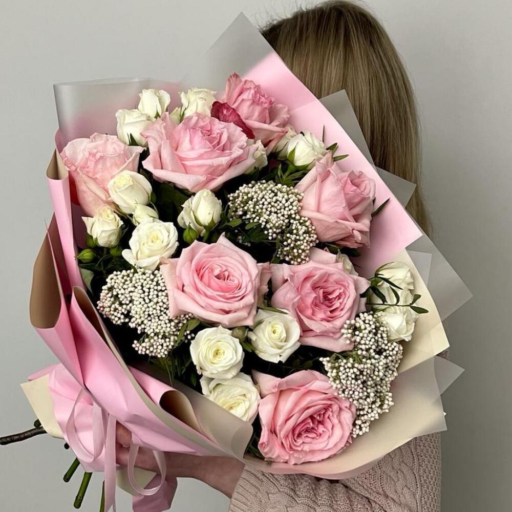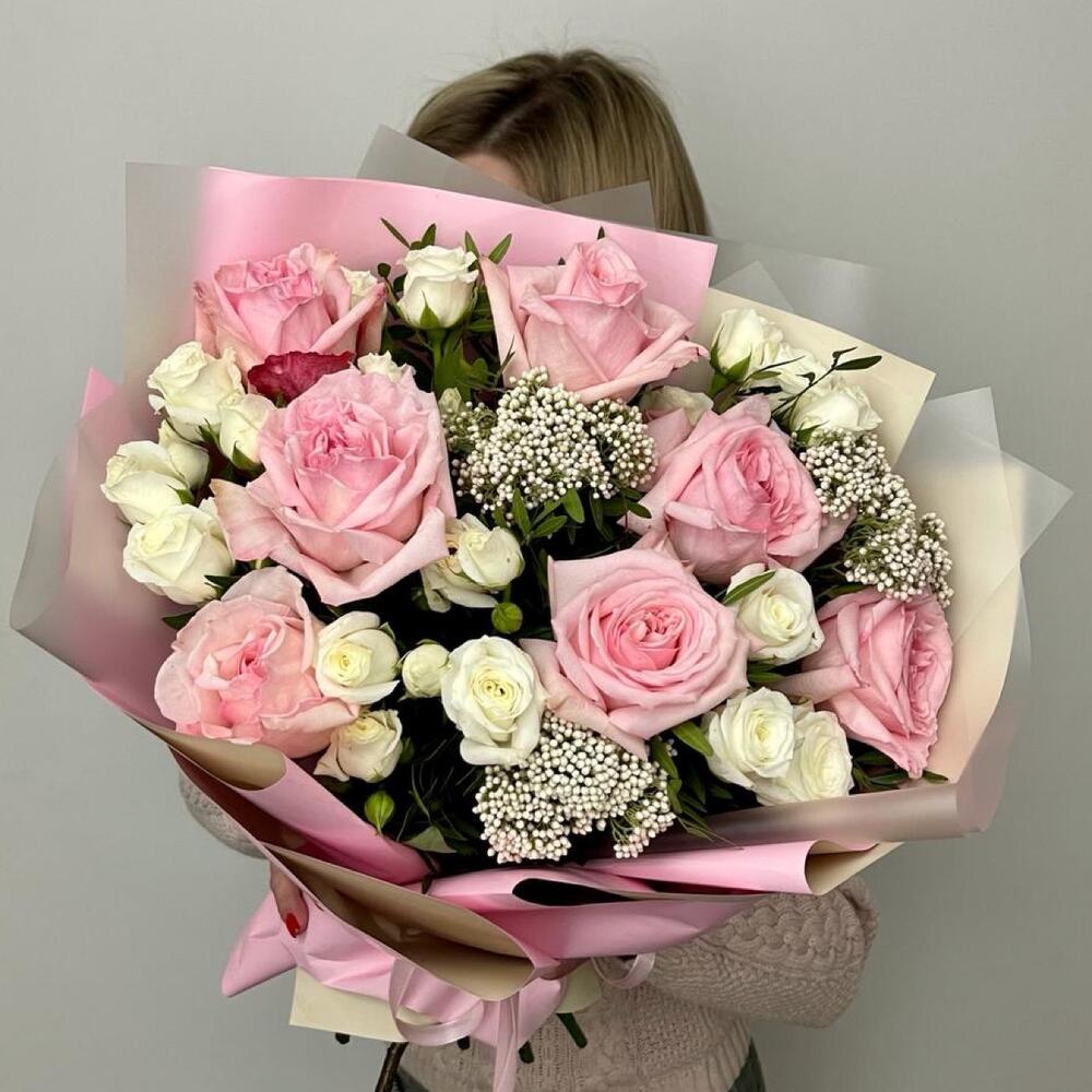 Гвоздики, Кустовые розы, Лизиантусы, Пионовидные розы, Розы