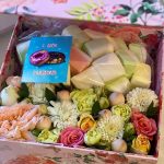 Цветы + сладости = идеальный подарок на любой повод дарения. Цветы в губке не требуют специального ухода, коробочка легко транспортируется и в дальнейшем может быть использования под другие цели.