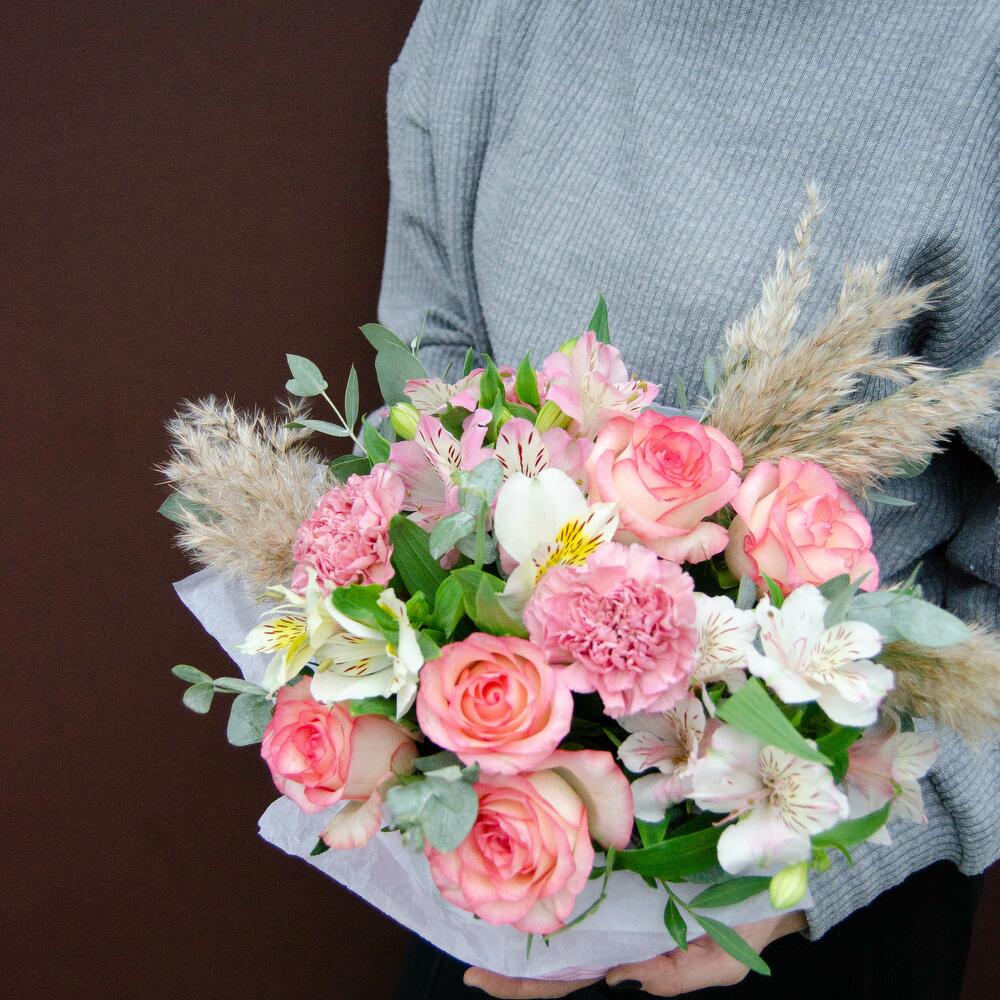 Категорий: Альстромерии, Гвоздики, Диантус, Розы, Эвкалипт
