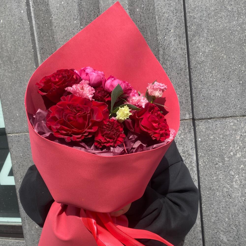 Гвоздики, Кустовые розы, Лизиантусы, Пионовидные розы, Розы