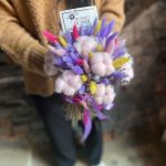 Букет из сухоцветов – лагуруса, лаванды и хлопка «Радуга в облаках»