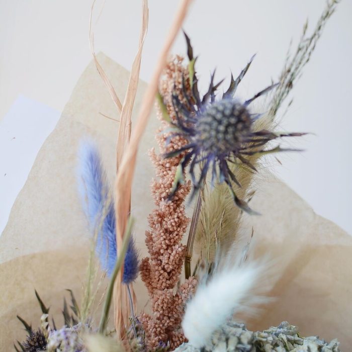гортензия сухоцвет – 1 шт.Сетария – 2 шт.Лимониум – 1 шт.Эрингиум – 9 шт.Лагурус – 8 шт.Упаковка дизайнерская – 1 шт.