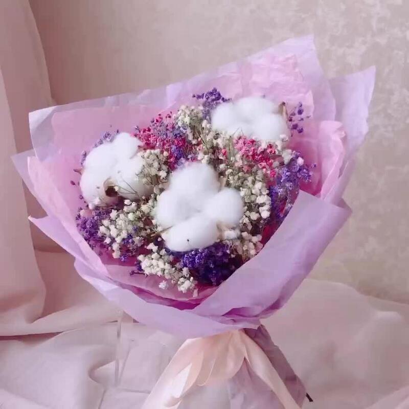 Лента атласная – 1 шт.Бумага тишью – 2 шт.хлопок белый – 3 шт.гипсофила сухоцвет белая – 1 шт.гипсофила сухоцвет розовая – 1 шт.гипсофила сухоцвет фиолетовая – 1 шт.