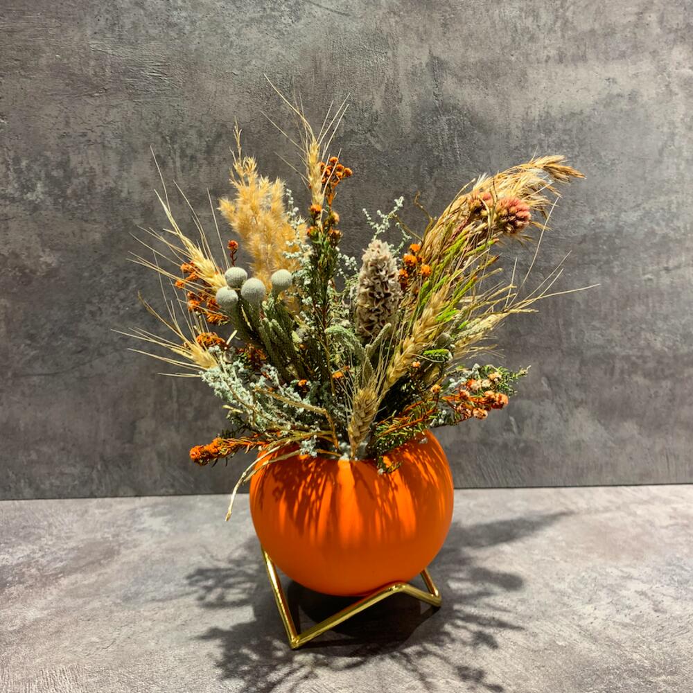 Сухоцветы – 7 шт.Колоски – 7 шт.декоративное кашпо – 1 шт.Флористический оазис – 1 шт.