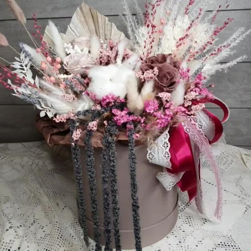Шикарная композиция в шляпной коробке)))Только натуральный состав)))Разнообразное сочетание стабилизированных цветов и сухоцветов…Станет прекрасным подарком)))Будет радовать не один год