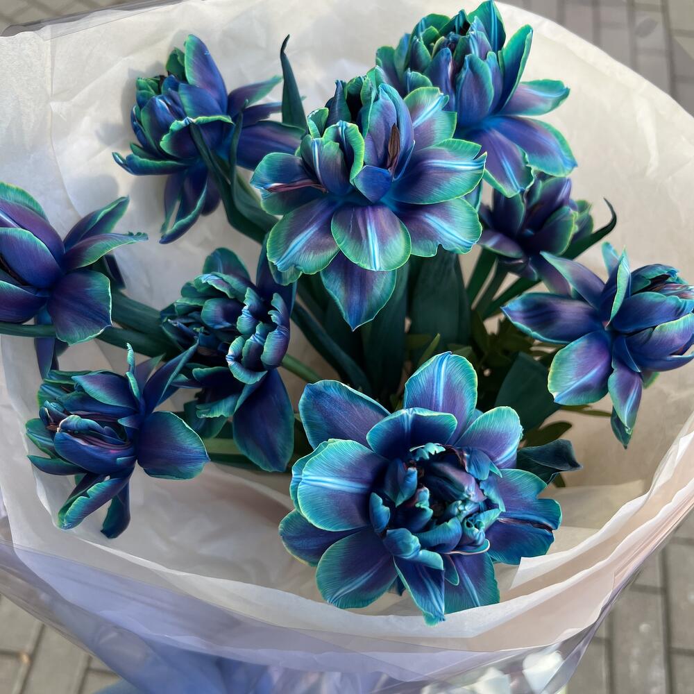 тюльпаны вип (крашенные) – 9 шт. Писташ – 2 шт. Оформление – 1 шт.