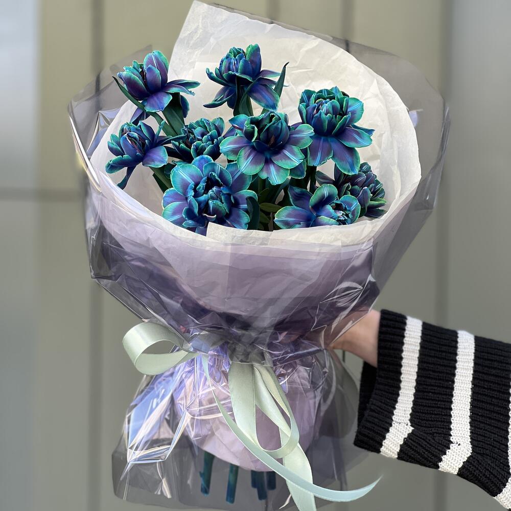 Букет Аквамарин из 9 тюльпанов vip